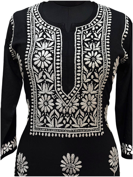 Modal Black Chikankari Kurti with Delicate White Embroidery
