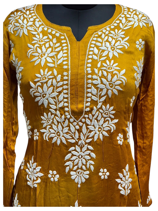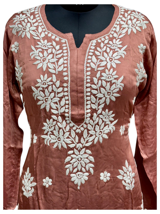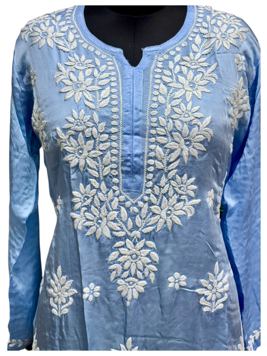 Premium Modal Satin Short Kurti With 3D Embroidery