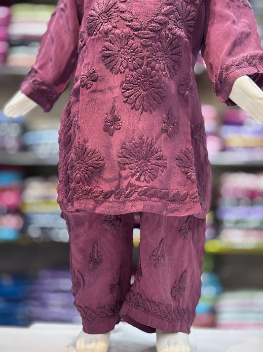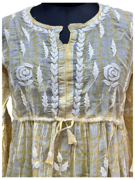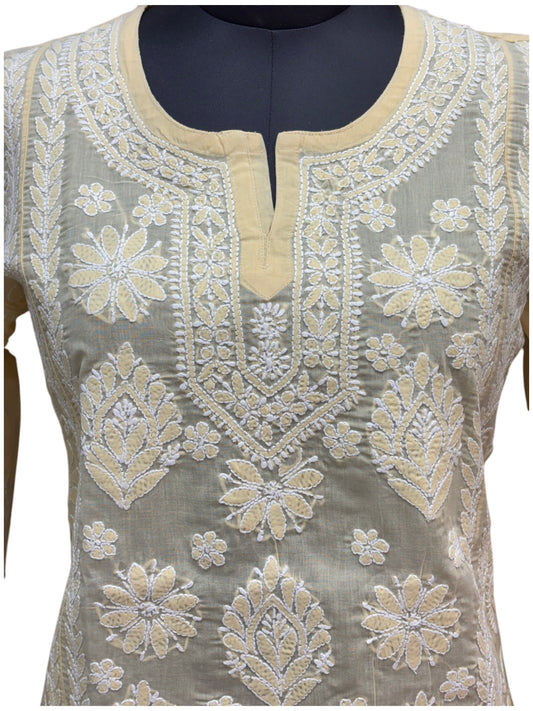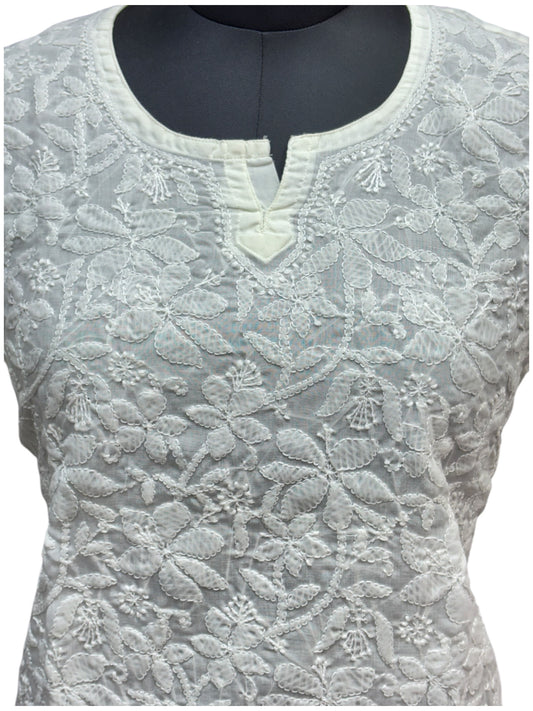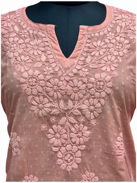 Pure Muslin Short Kurti With Self-Thread 3D Embroidery
