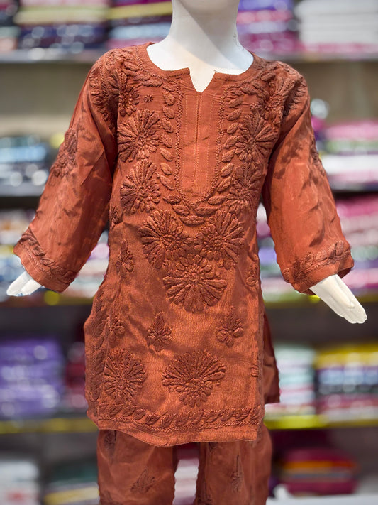 Soft American Crepe Kids Cord Set With 3d Embroidery