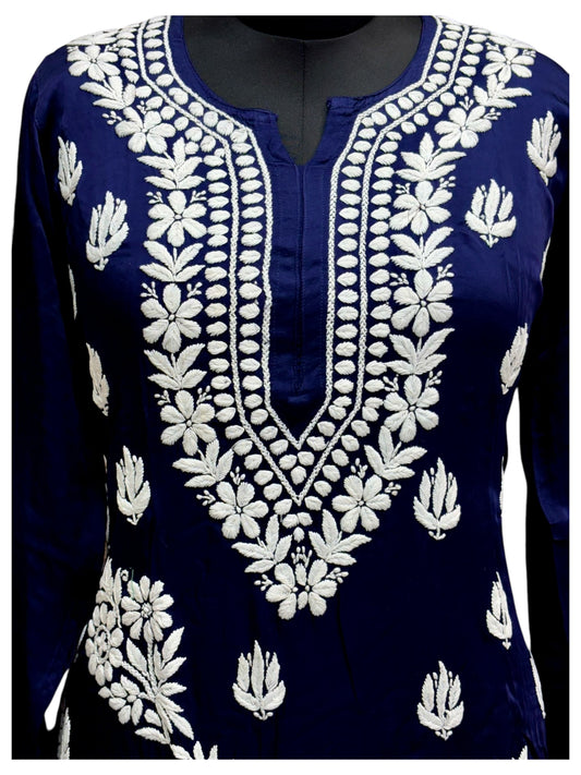 Soft Modal Short Kurti with White Embroidery - Perfect blend of comfort and style