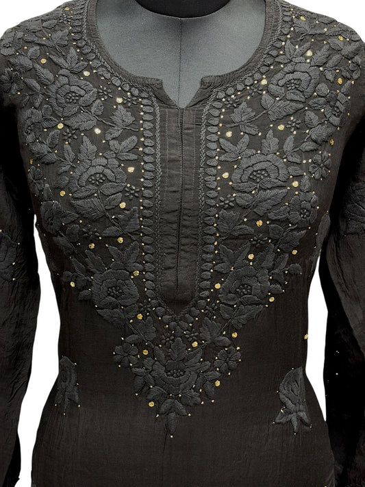 Stunning Muslin Black Kurti with Mukaish & Self-Thread 3D Embroidery