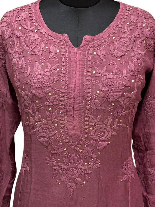 Stunning Muslin Kurti with Mukaish & Self-Thread 3D Embroidery