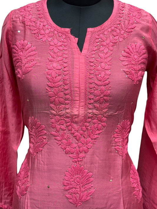 Our Chikan Kurtis in Matka Silk combine the rich, textured feel of...