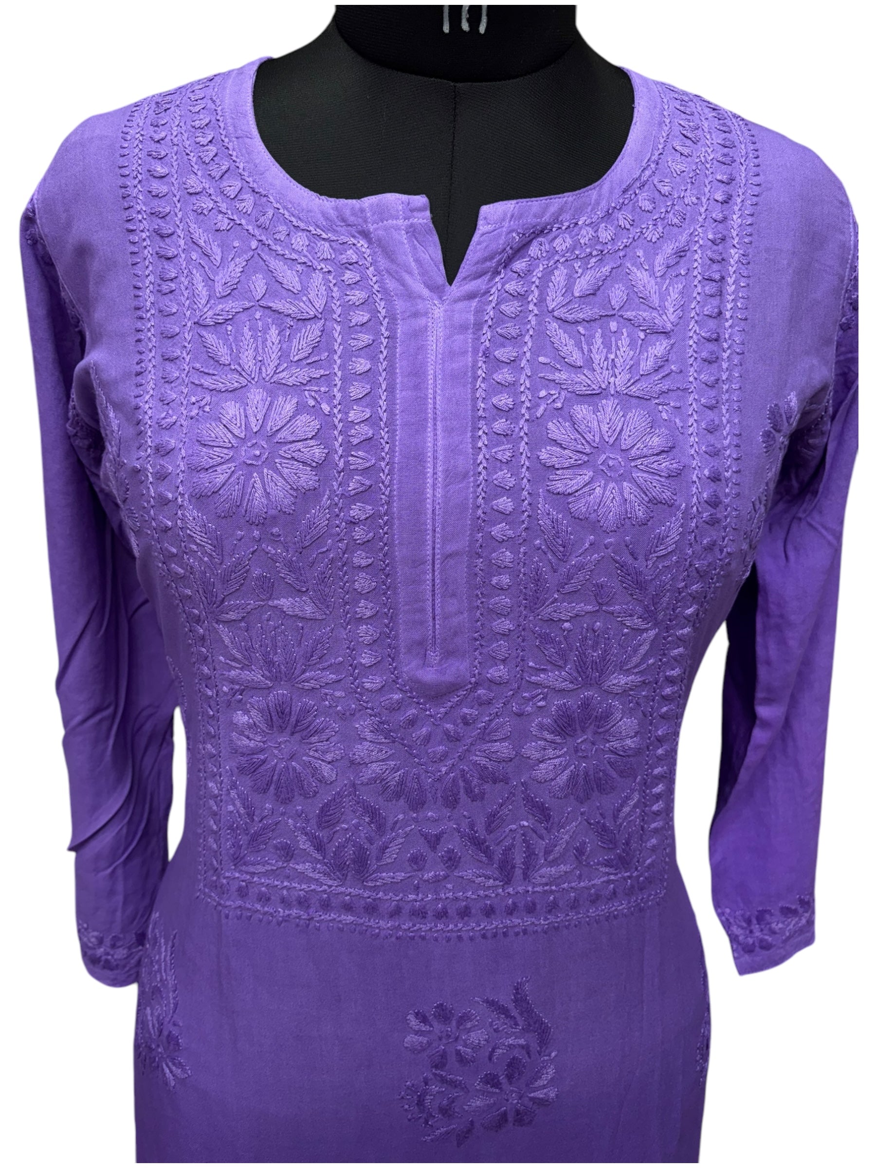 Elegant Chikankari Modal Kurti with Resham Thread 3D Embroidery
