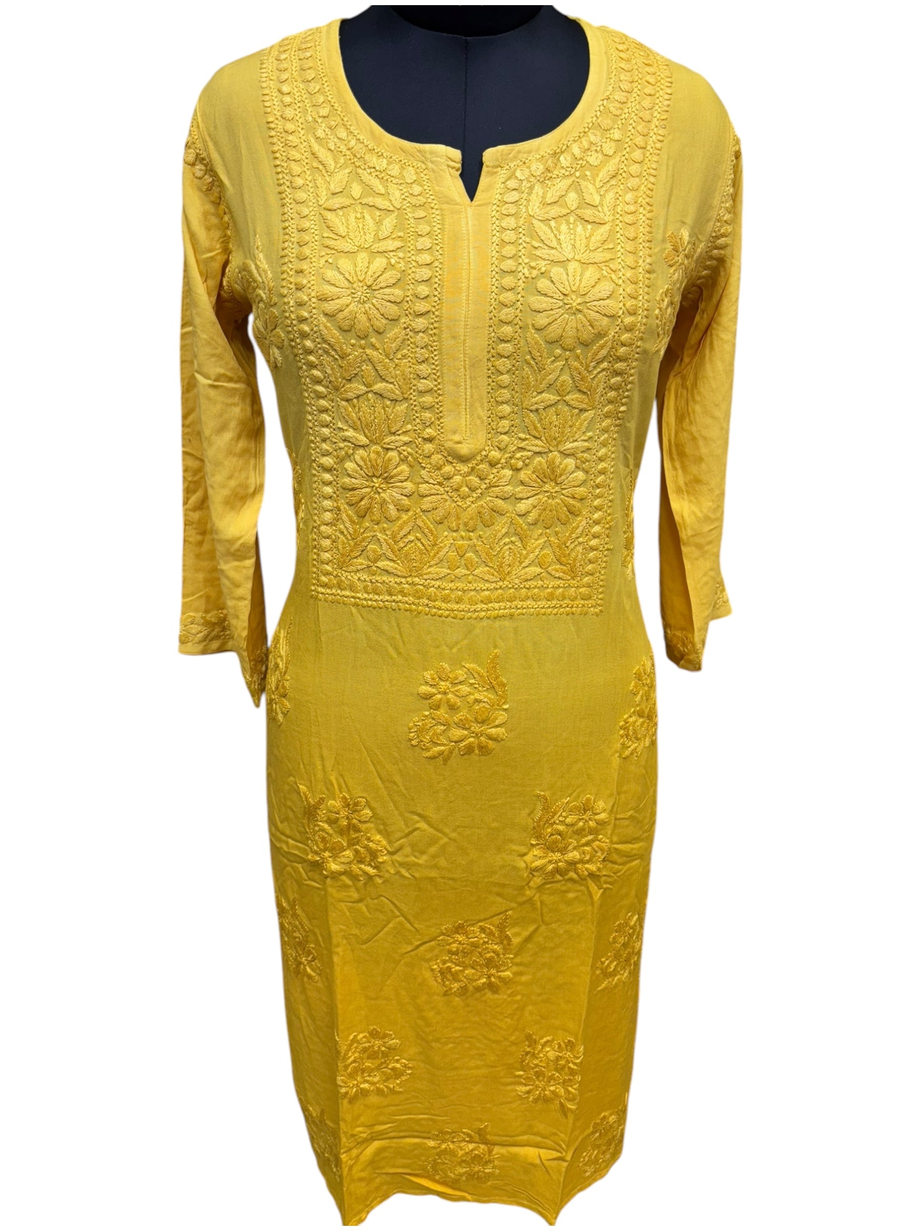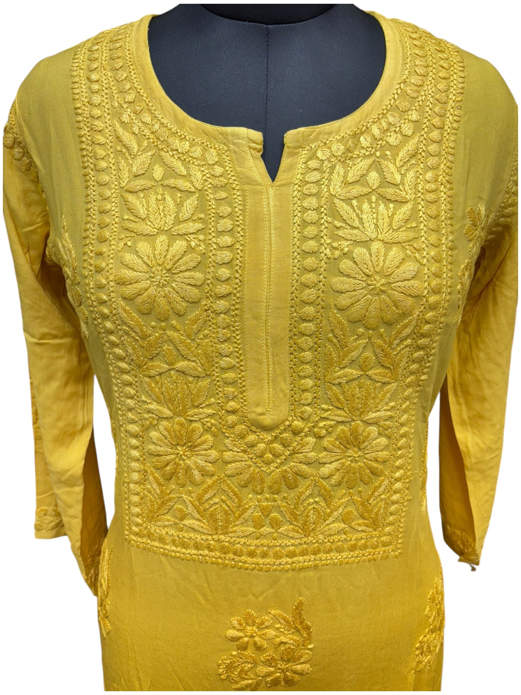 • This Chikankari Modal Kurti features exquisite 3D embroidery with resham thread, adding a unique texture and depth to the traditional craftsmanship.