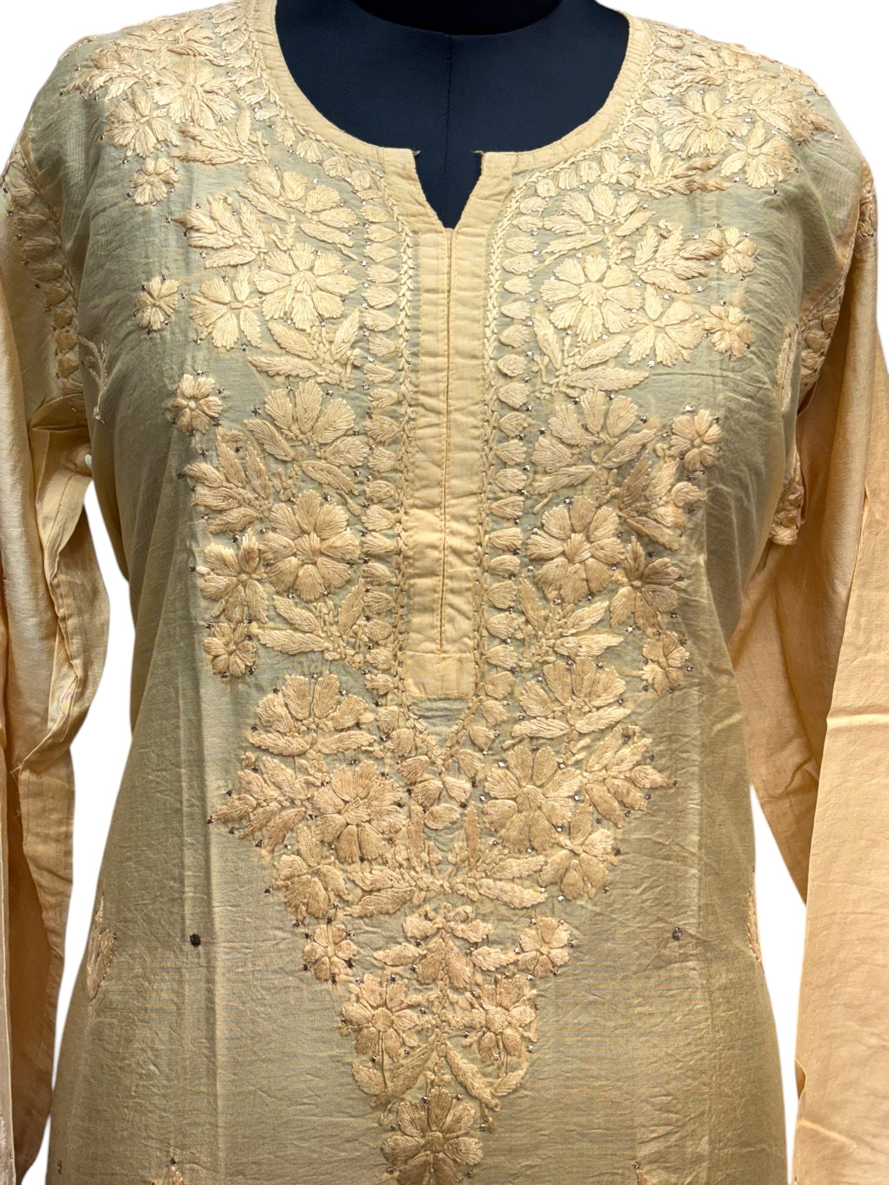 • Premium Silk Chikankari Kurti : Featuring intricate resham embroidery and delicate mukaish work, this kurti offers a perfect blend of traditional craftsmanship and modern elegance.