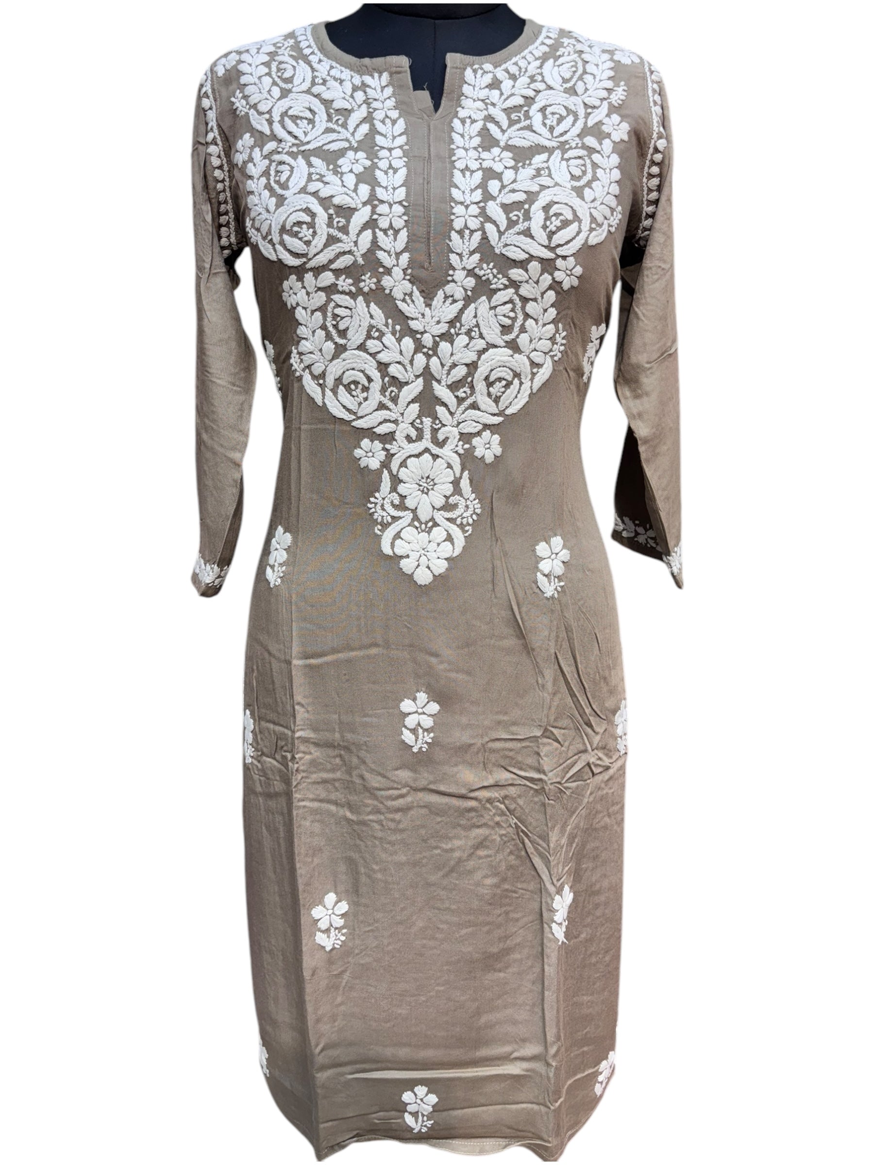 Modal Chikankari Kurti with Delicate White Embroidery