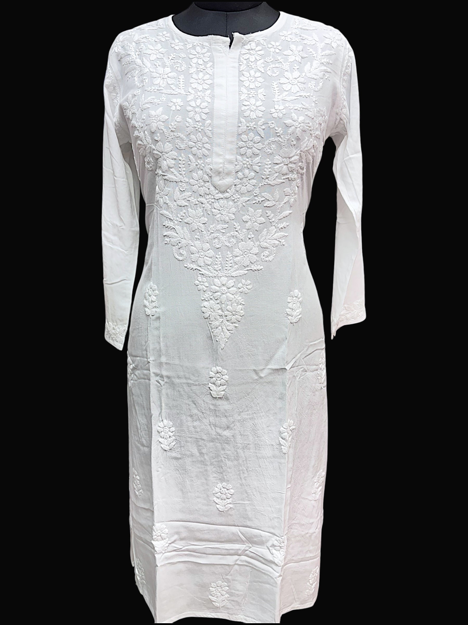 - Features intricate white Chikankari embroidery, adding a touch of traditional artistry to modern style.