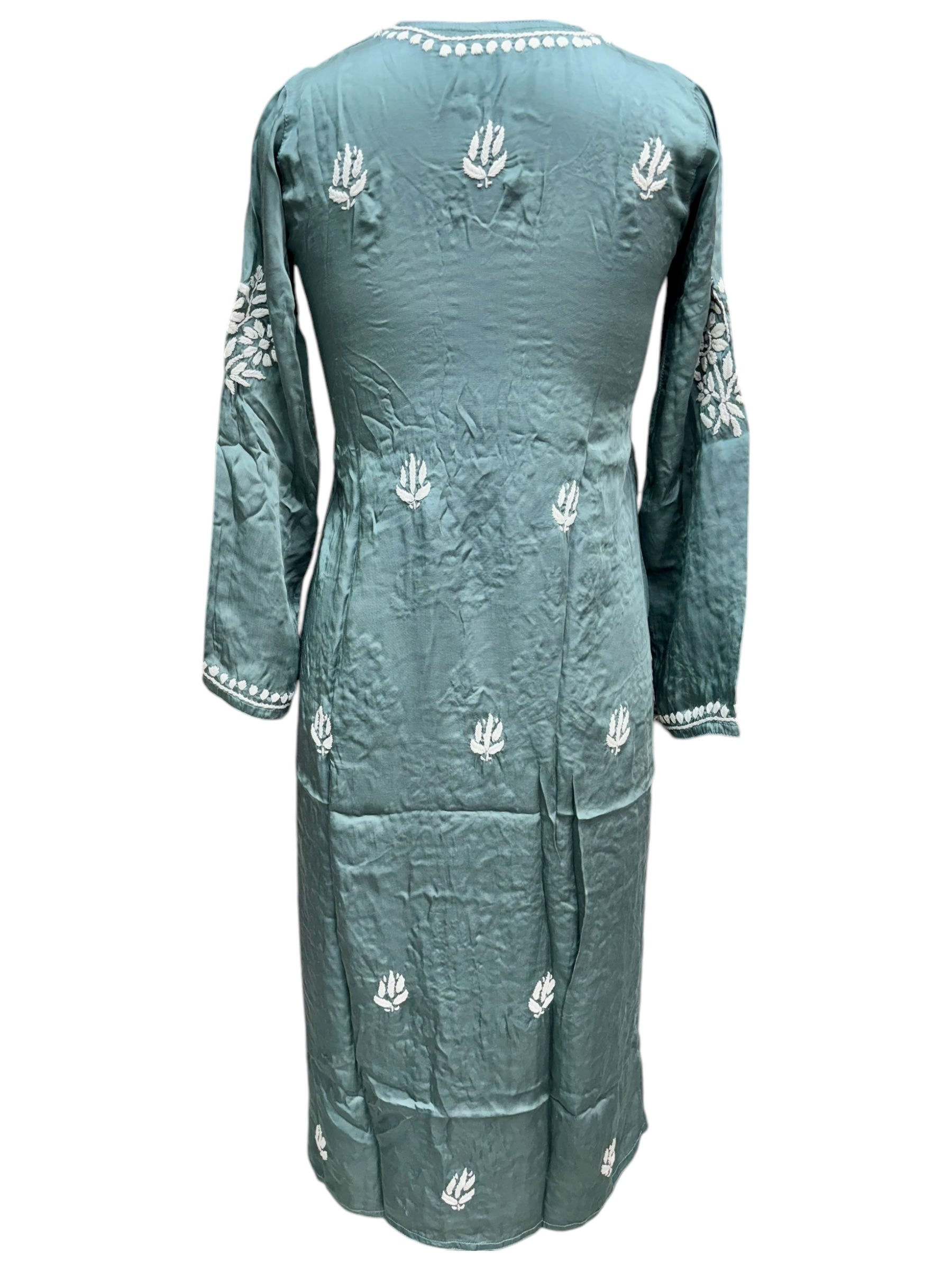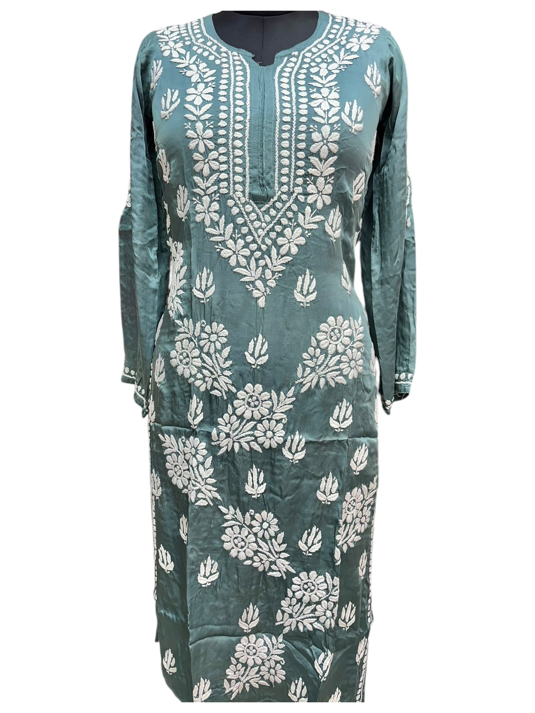 • Premium Modal Satin Fabric: Experience luxurious comfort with our Modal Satin Chikankari Kurti, featuring a smooth, soft texture that's perfect for all-day wear.