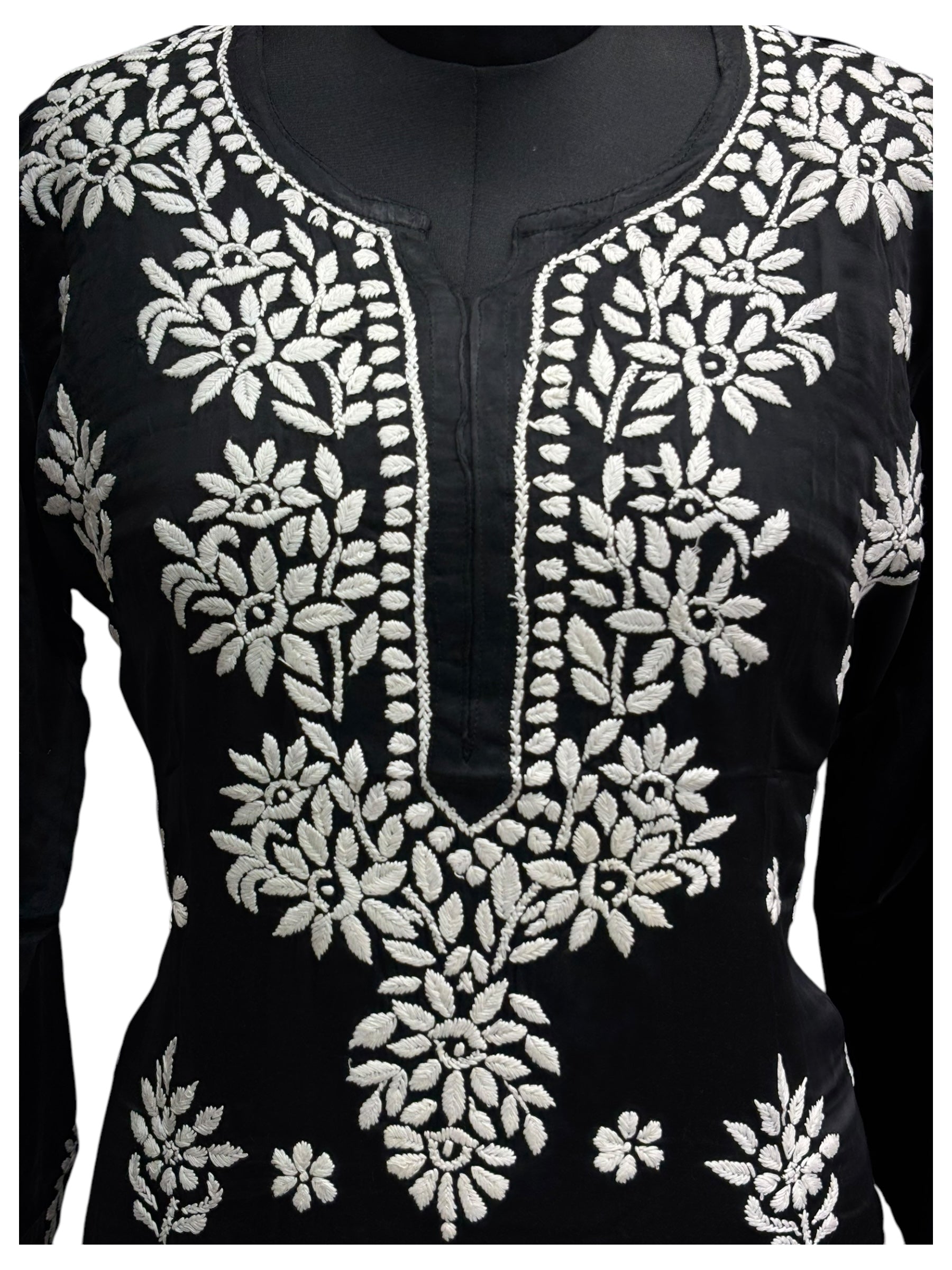 Premium Black Modal Satin Kurti With 3D Embroidery