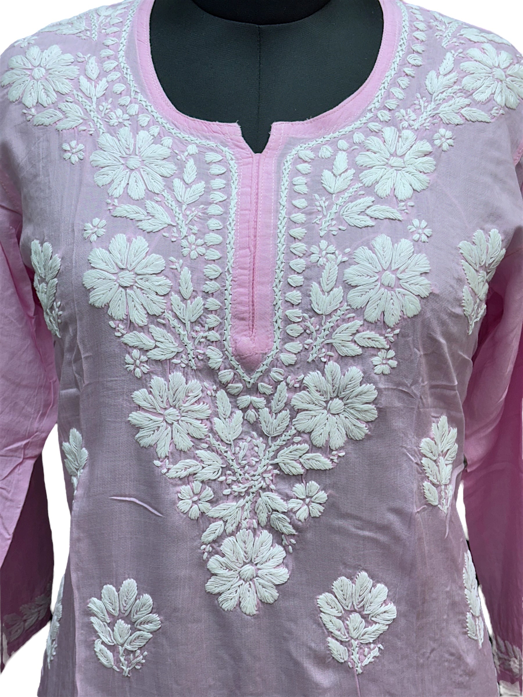 • Elegant Design: Crafted with intricate white chikankari embroidery on premium modal fabric, this short kurti adds a touch of sophistication to your wardrobe.