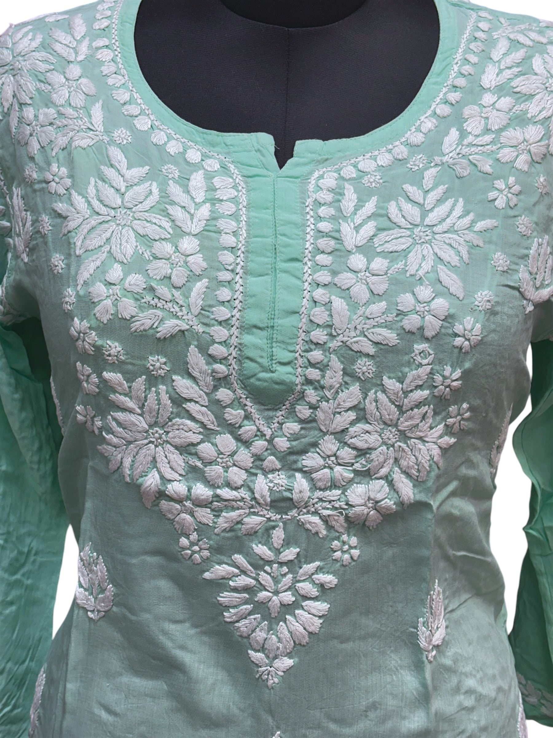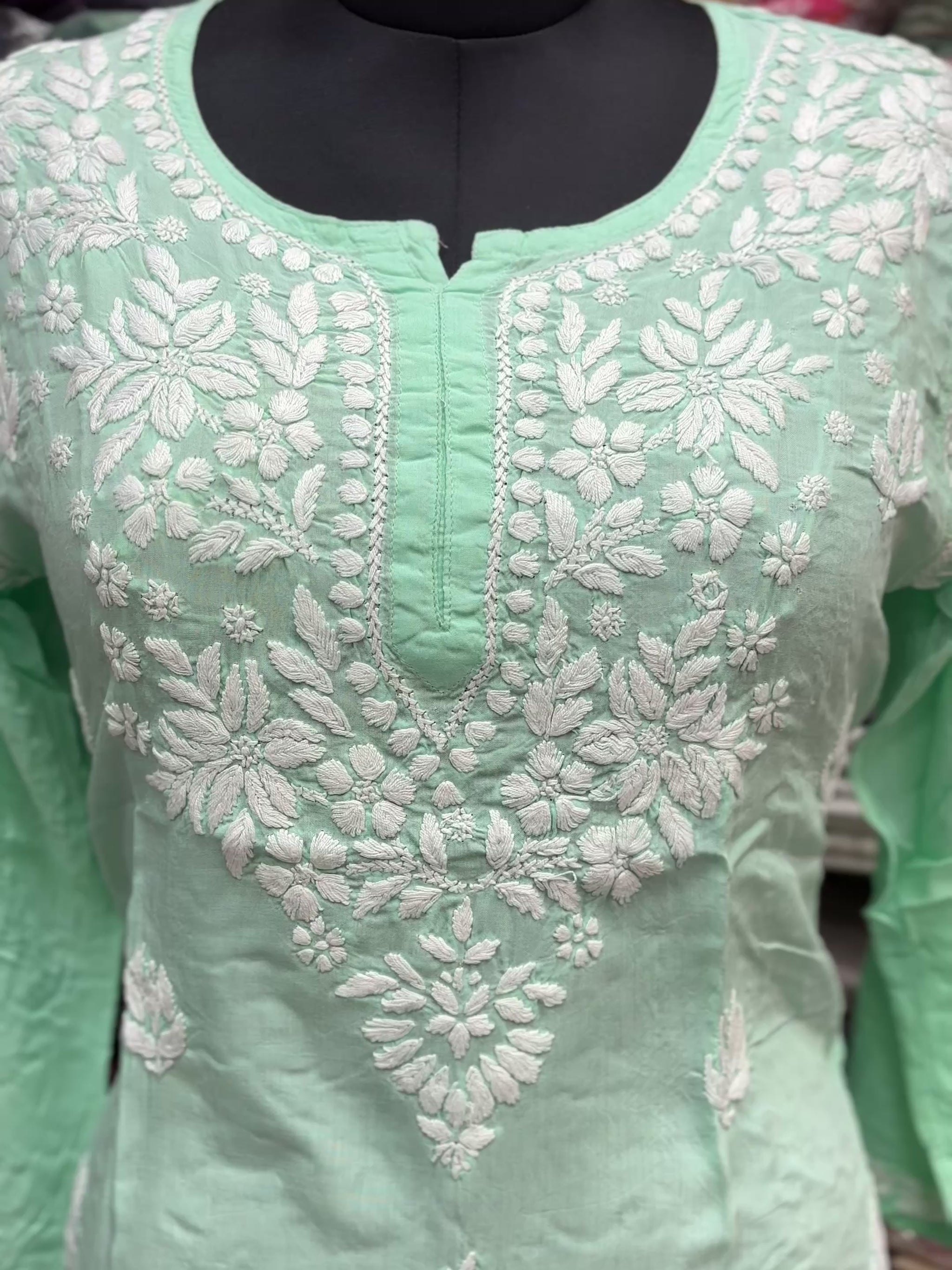 - Elegant Design: Crafted with intricate white chikankari embroidery on premium modal fabric, this short kurti adds a touch of sophistication to your wardrobe.