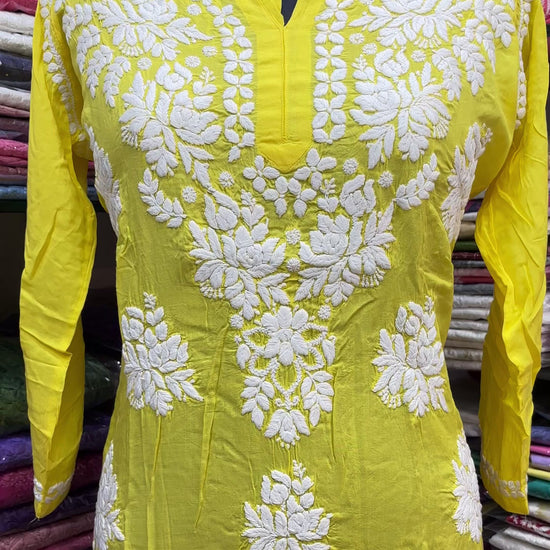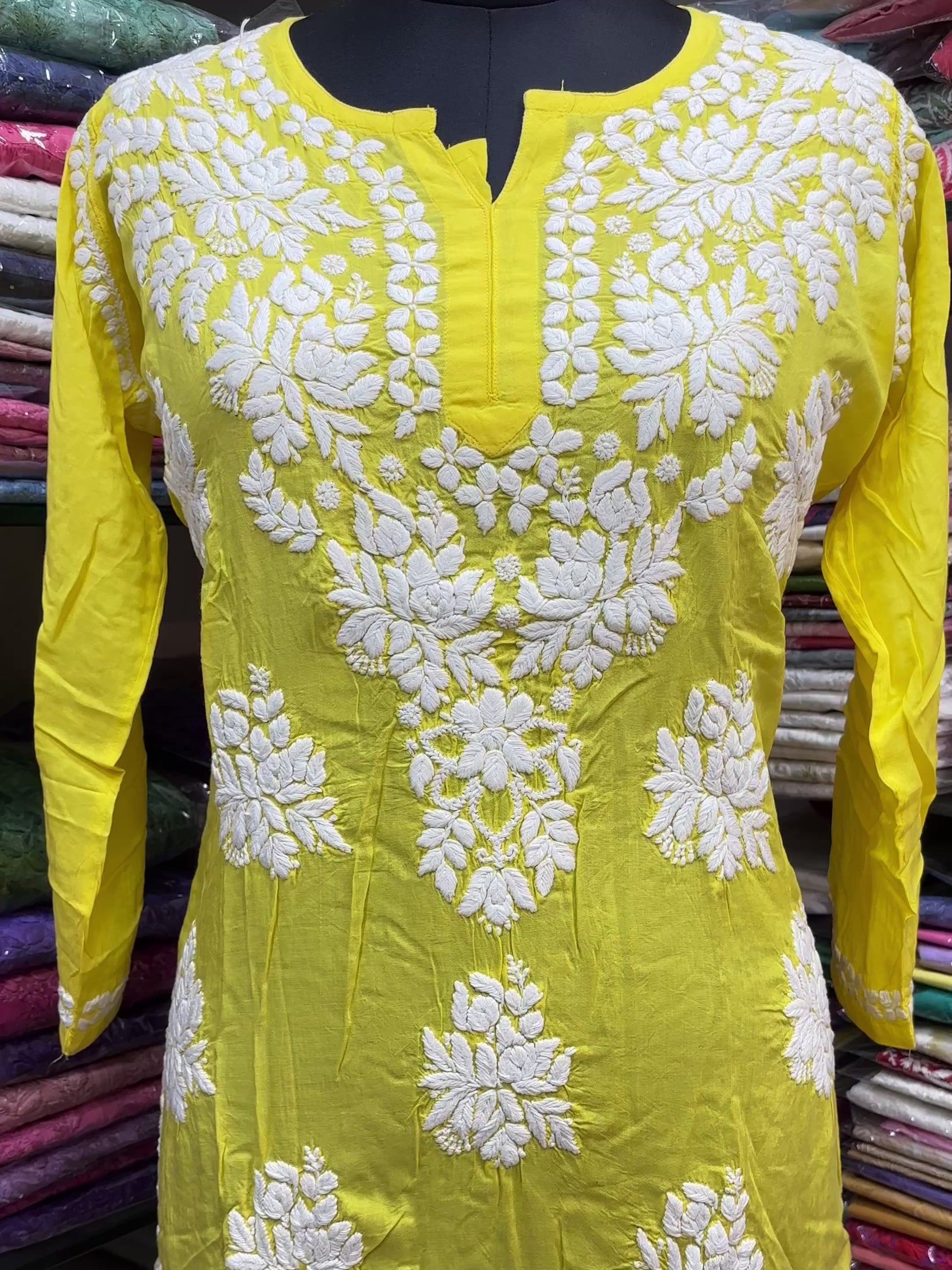 • Elegant Design: Crafted with intricate white chikankari embroidery on premium modal fabric, this short kurti adds a touch of sophistication to your wardrobe.