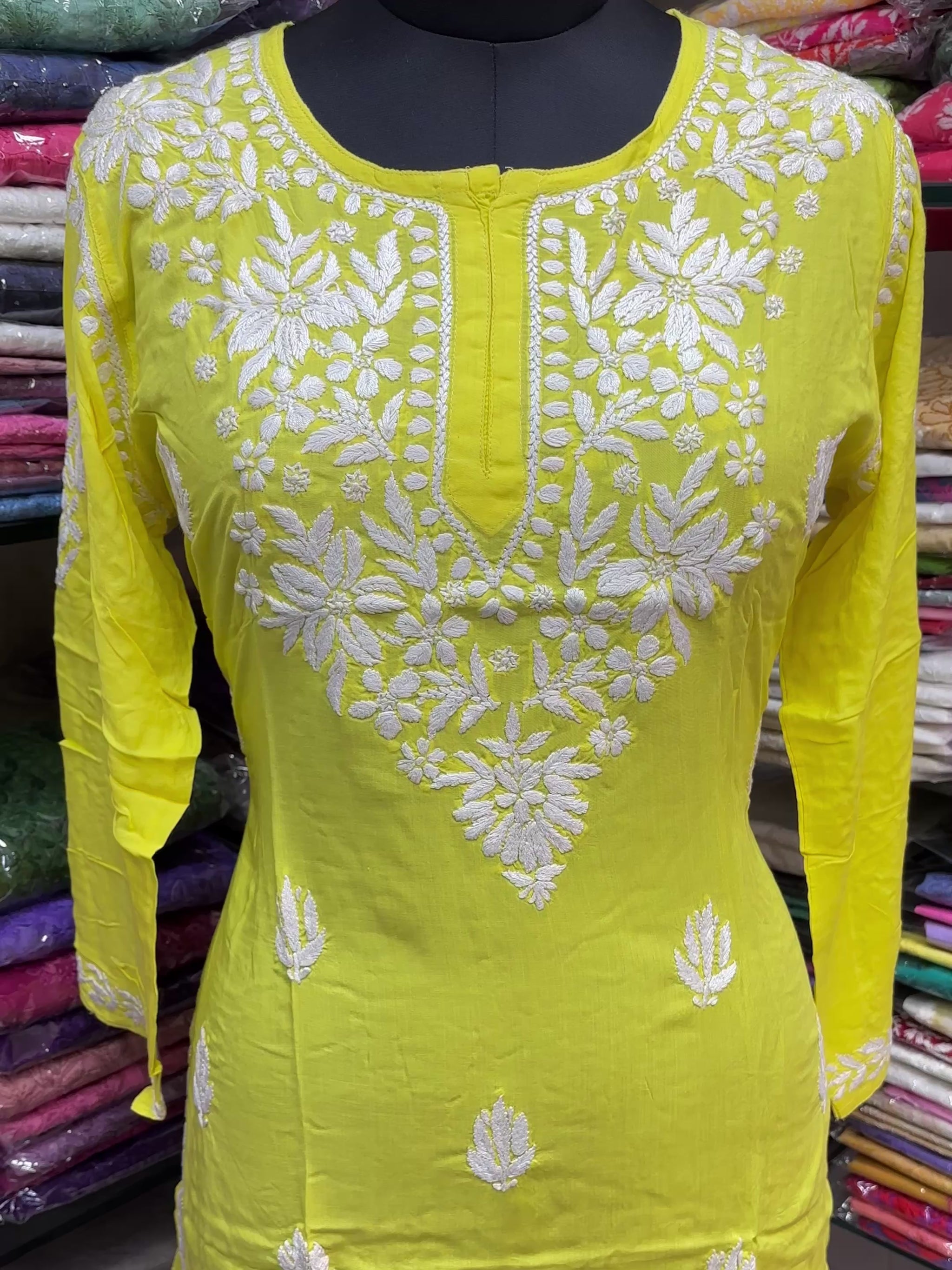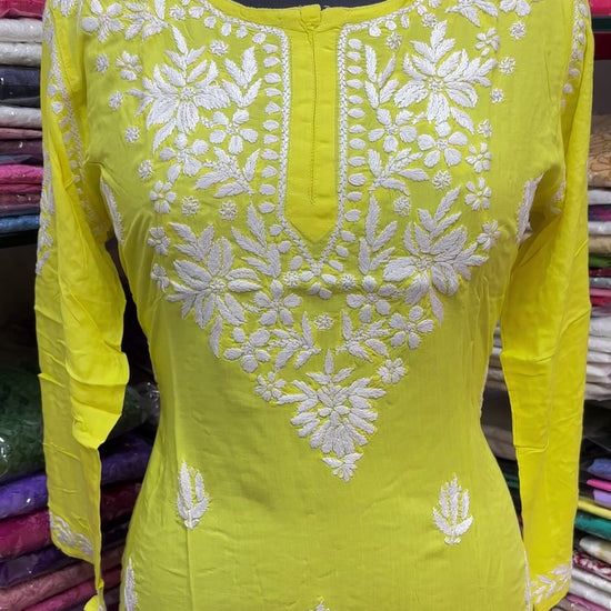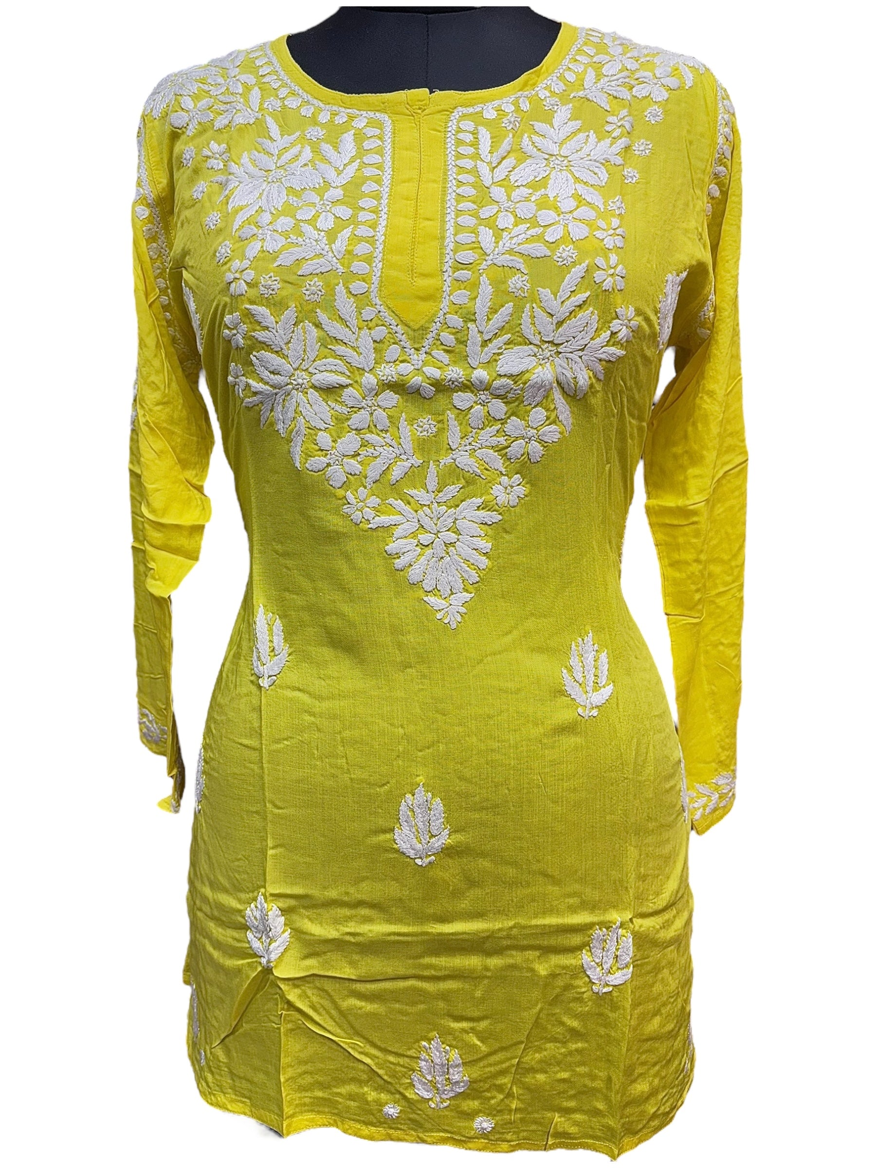 - Elegant Design: Crafted with intricate white chikankari embroidery on premium modal fabric, this short kurti adds a touch of sophistication to your wardrobe.