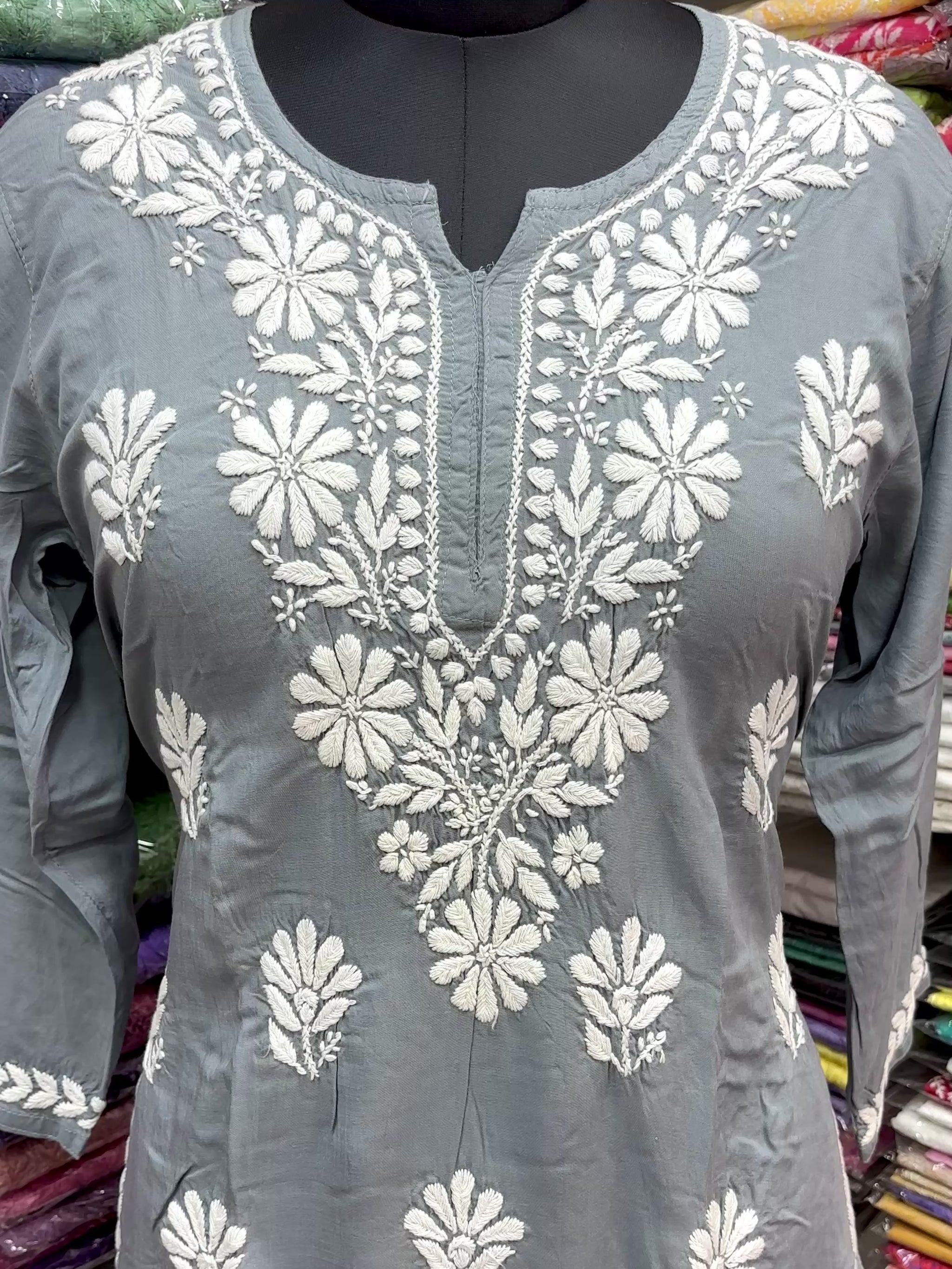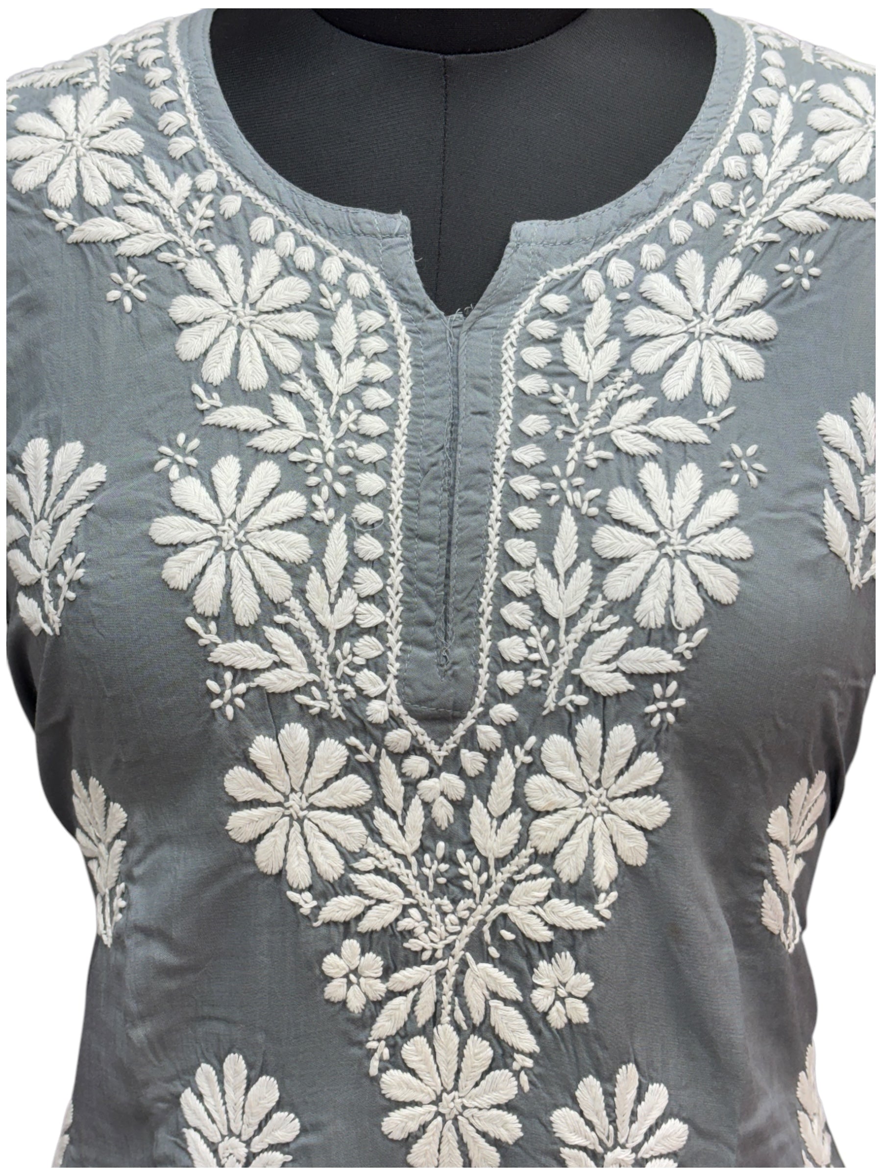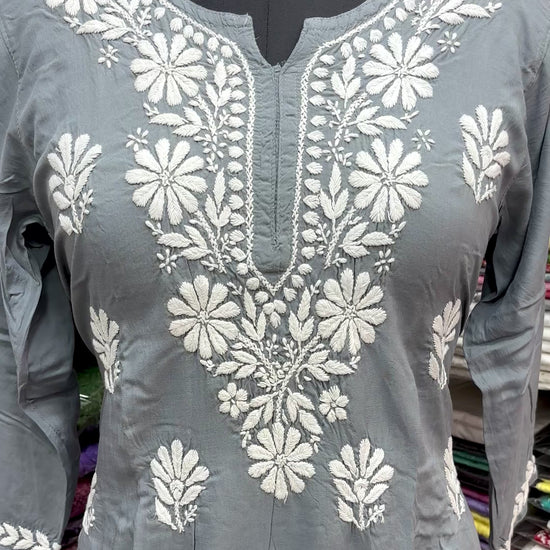 • Elegant Design: Crafted with intricate white chikankari embroidery on premium modal fabric, this short kurti adds a touch of sophistication to your wardrobe.