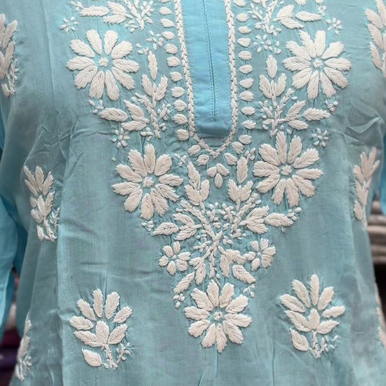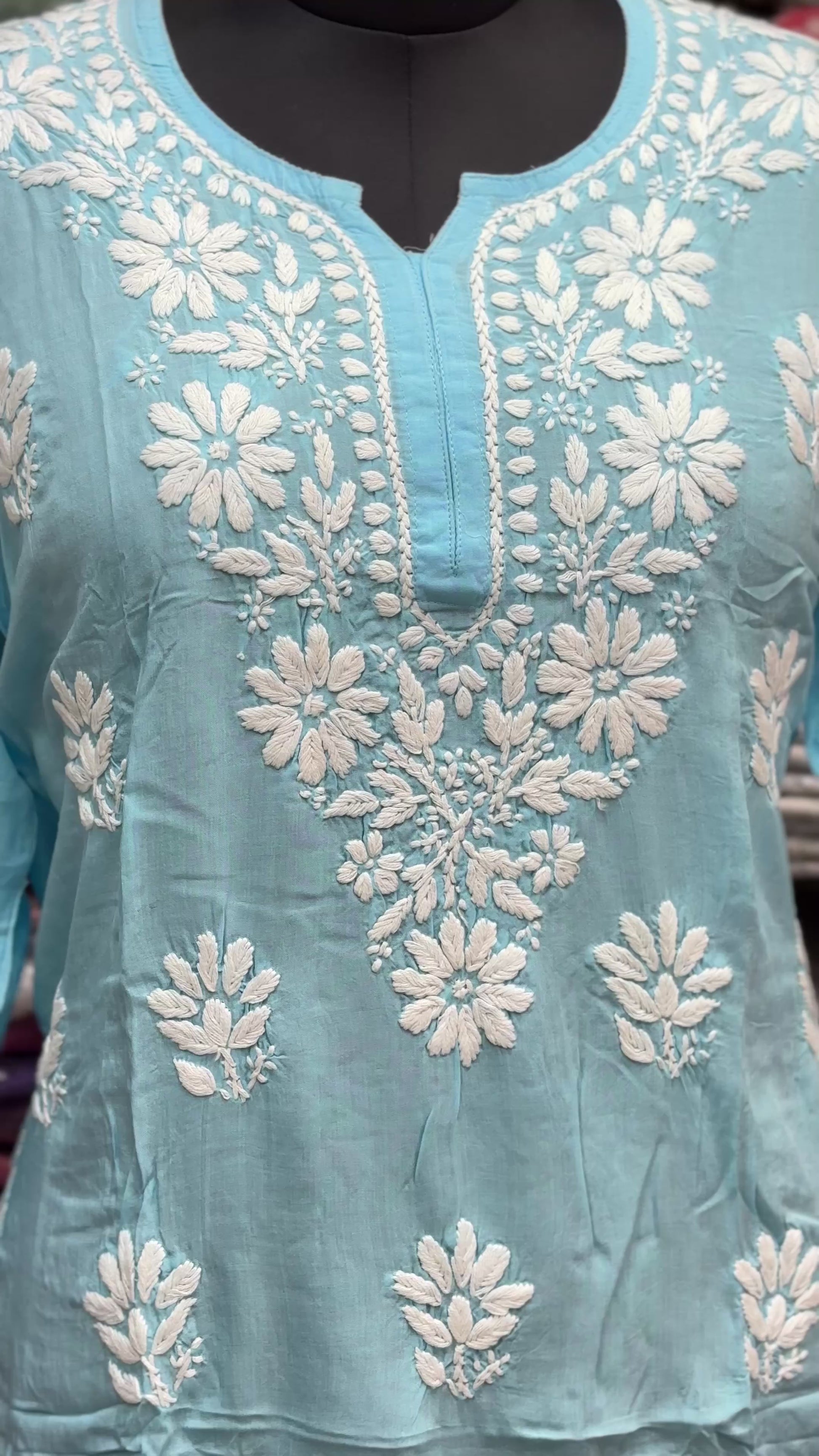 • Elegant Design: Crafted with intricate white chikankari embroidery on premium modal fabric, this short kurti adds a touch of sophistication to your wardrobe.