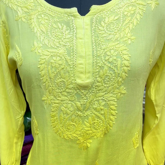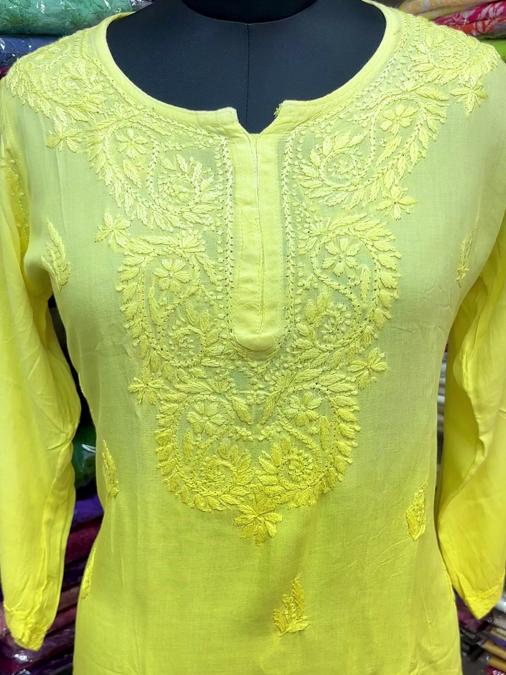• Elegant Design: Crafted with intricate chikankari embroidery on premium modal fabric, this short kurti adds a touch of sophistication to your wardrobe.