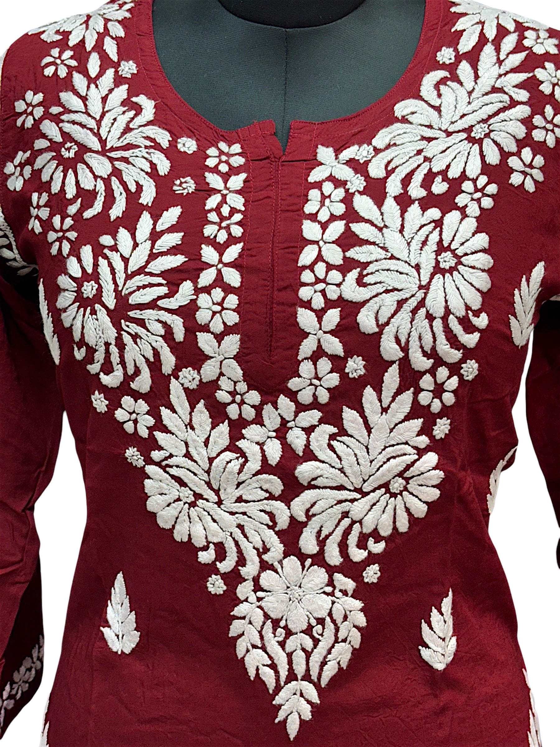 • Elegant Design: Crafted with intricate white chikankari embroidery on premium modal fabric, this short kurti adds a touch of sophistication to your wardrobe.