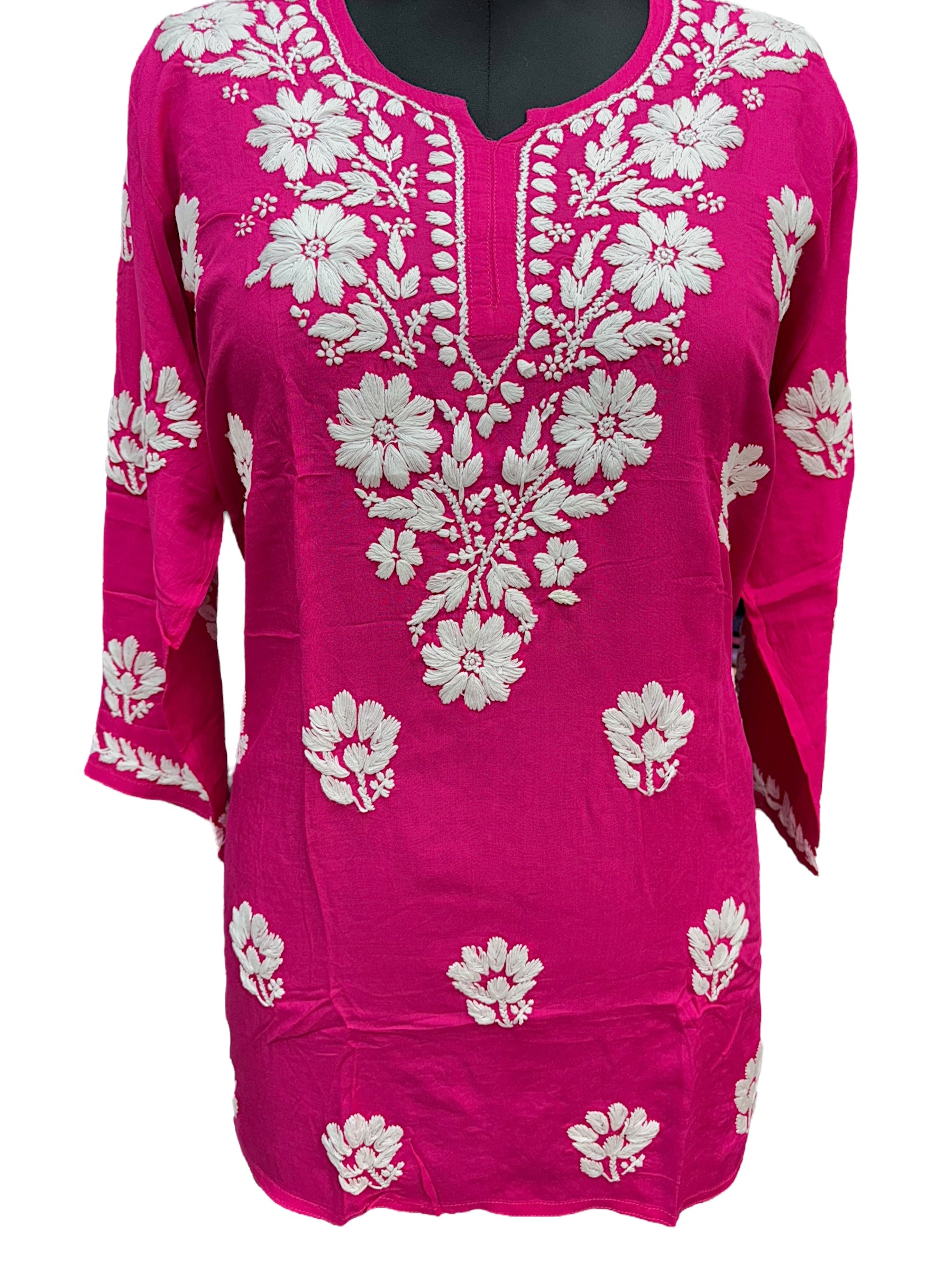 - Elegant Design: Crafted with intricate white chikankari embroidery on premium modal fabric, this short kurti adds a touch of sophistication to your wardrobe.