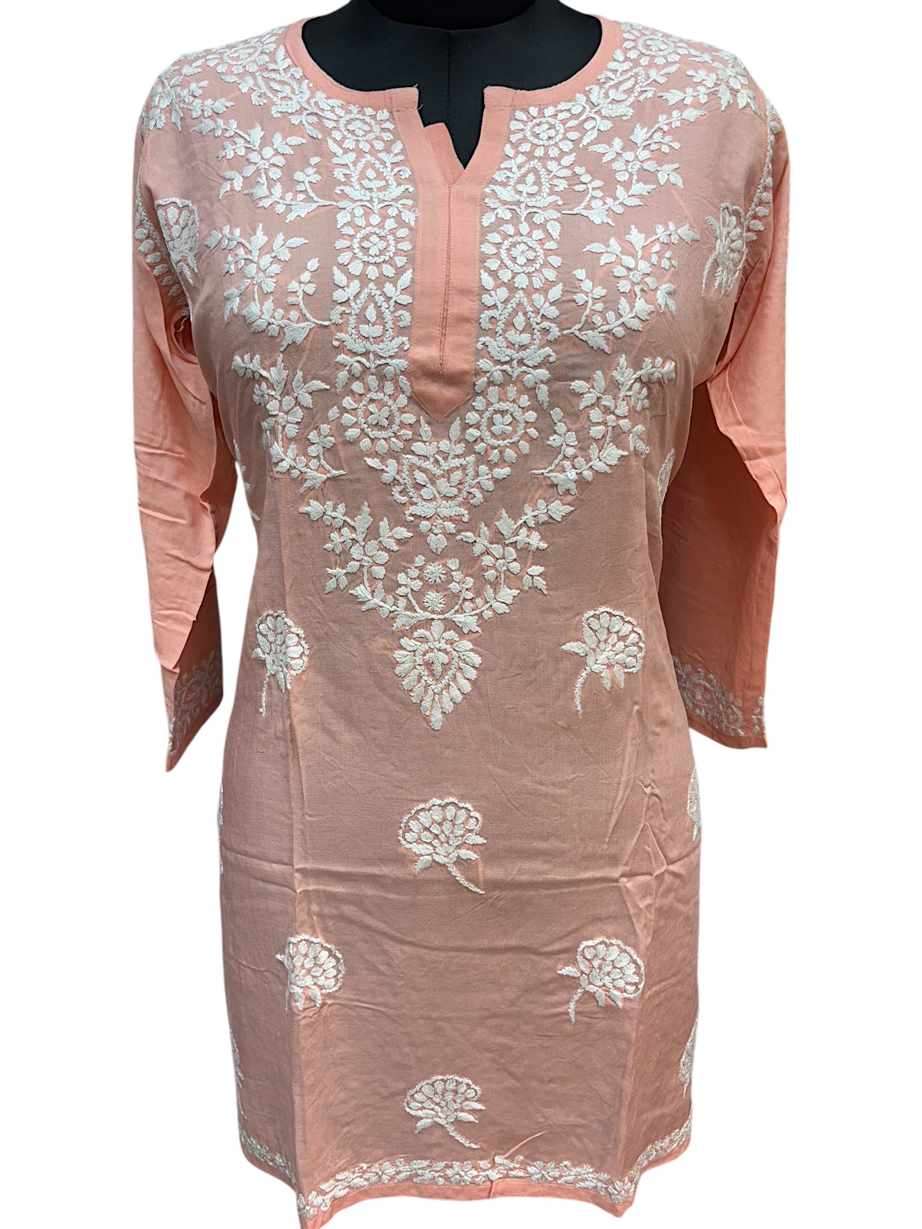 • Elegant Design: Crafted with intricate white chikankari embroidery on premium modal fabric, this short kurti adds a touch of sophistication to your wardrobe.