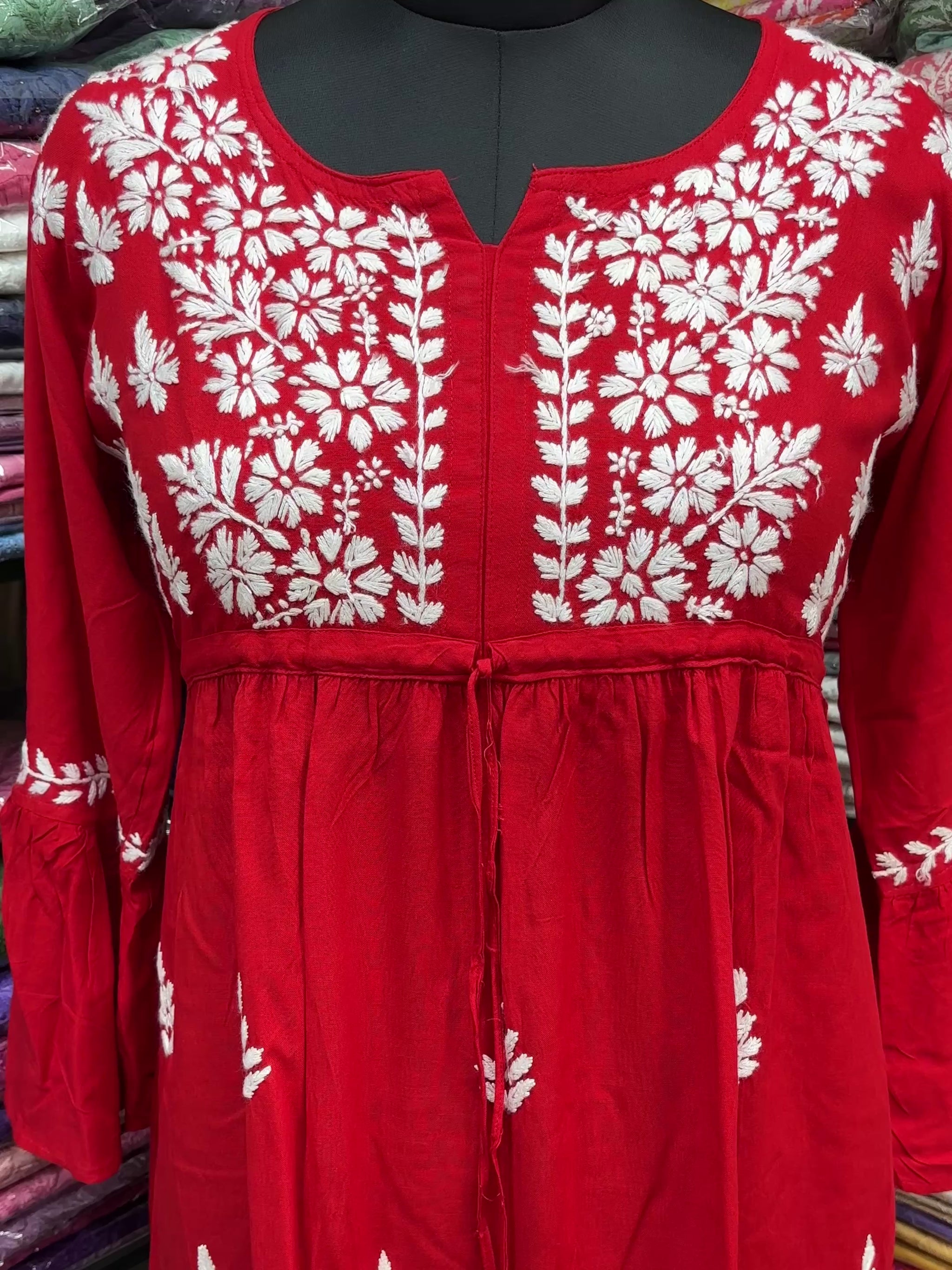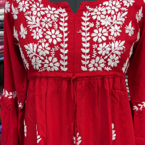 • Elegant Design: Crafted with intricate white chikankari embroidery on premium modal fabric, this short kurti adds a touch of sophistication to your wardrobe.